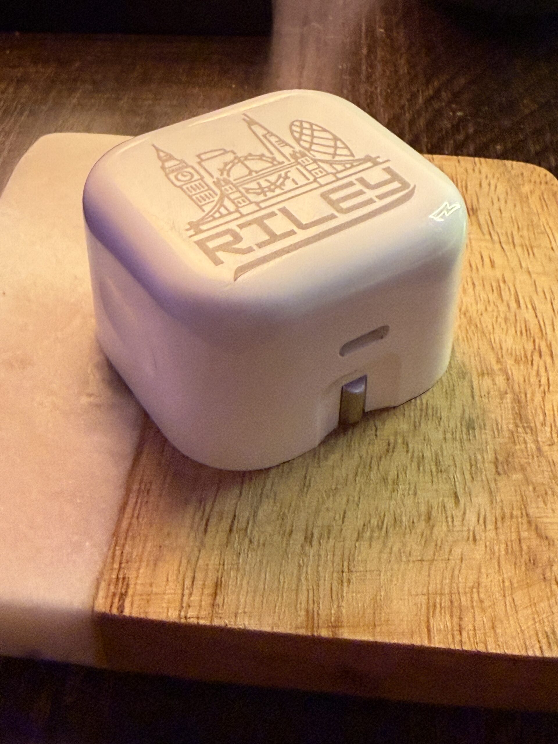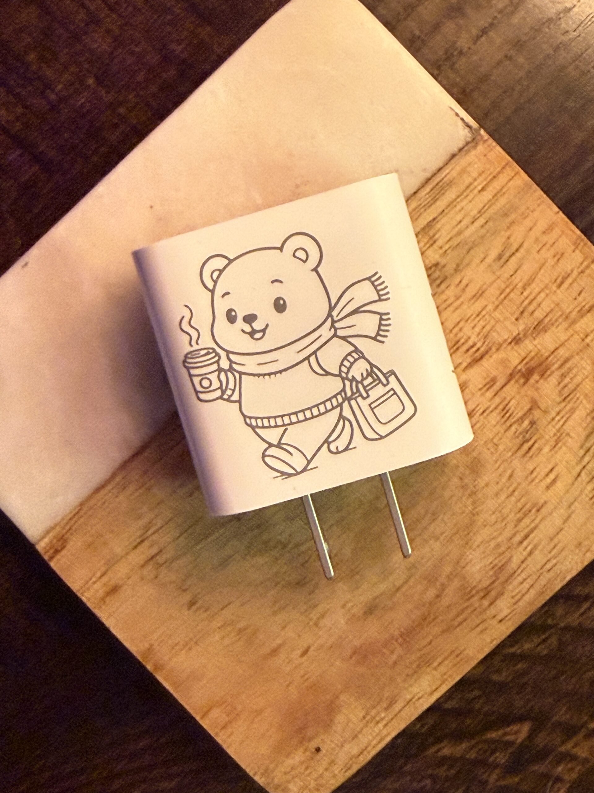 Upgrade your everyday charging with a charger that’s actually yours. We take authentic Apple power adapters and custom-engrave them to order — from simple names to full skyline scenes, cute icons, aviation art, pup designs, or completely custom creations. Every piece is engraved in Sacramento, CA with crisp, permanent detail.